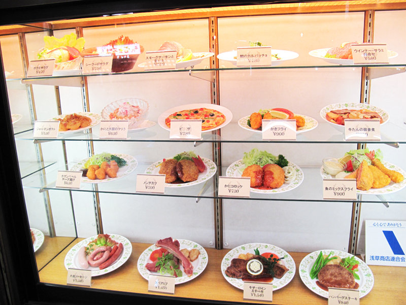 昭和の洋食メニュー満載のショーケース。