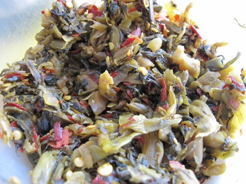 卓上の辛子高菜も手作りなのでしょう。