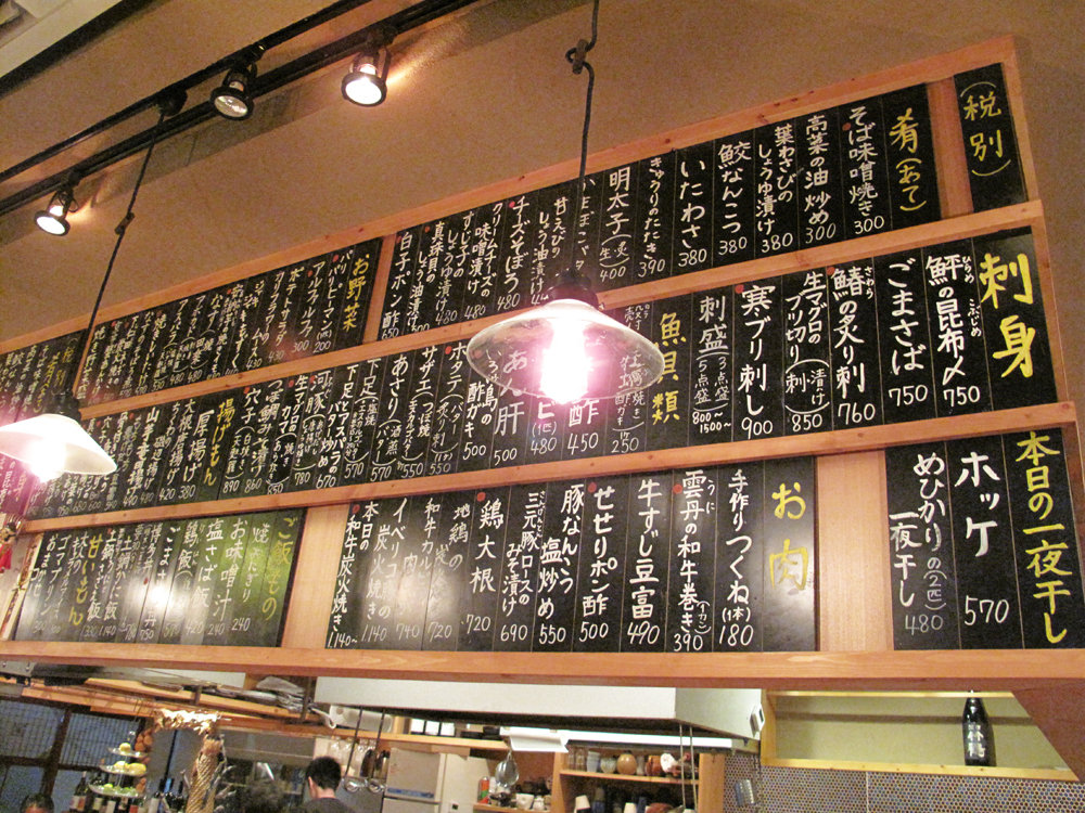 頭上には旬の手書きメニューが沢山書かれてます。