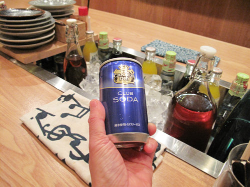 ドリンクコーナーから炭酸水の缶を取って、自分で好きな濃さにして飲めるシステムです。