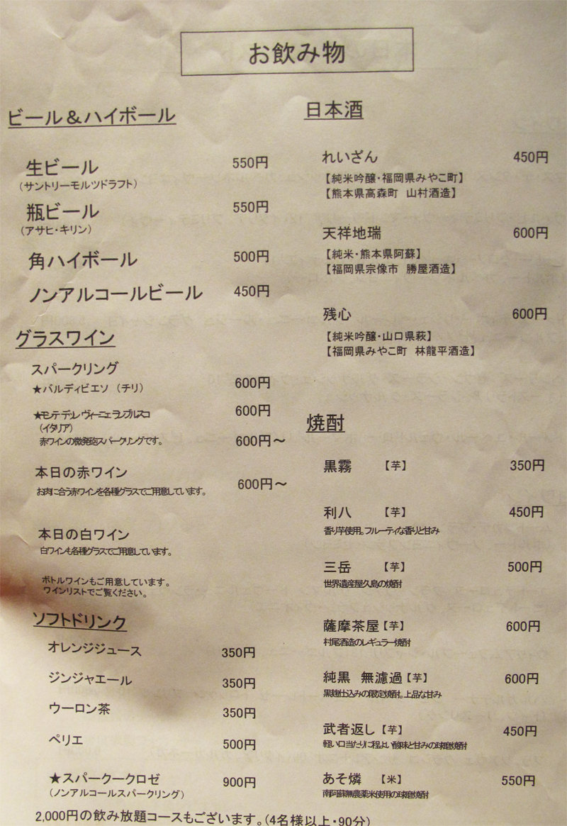 しかもドリンクの価格設定は西中洲なのにリーズナブル。
