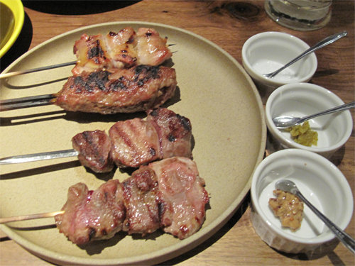 お次は、人気メニューだというジビエ串盛り合わせ。