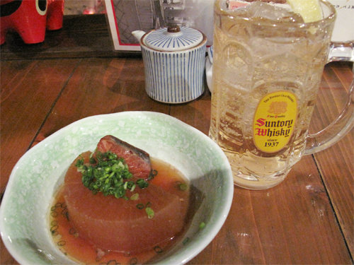 お通しは3種類位から選べるシステムで、今回はブリ大根を選択。