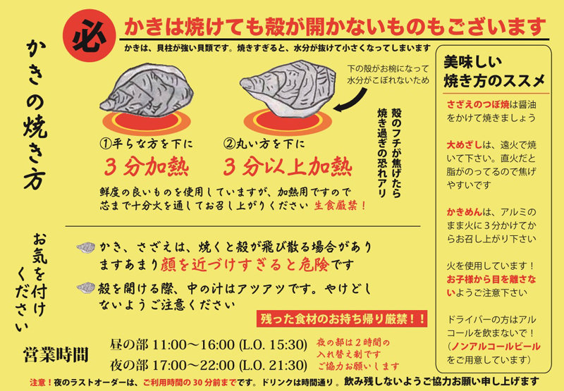 牡蠣は表ウラ各3分位焼いたとこで頂きます。