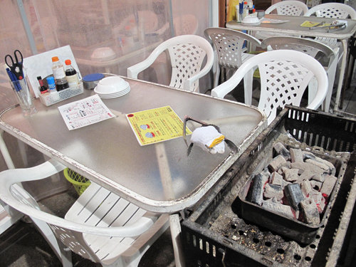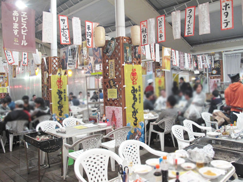 福岡の老舗ビル・福岡ビルの屋上に上がると、そこは海鮮BBQ会場になってます。