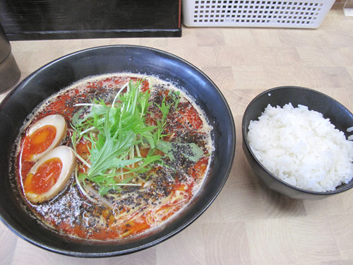 濃厚な練りごまと濃厚なタレ味のスープに、黒ゴマの香ばしいコクと辣の風味。