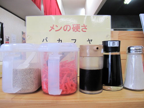 卓上には、紅しょう・ゴマ・コショウなど。