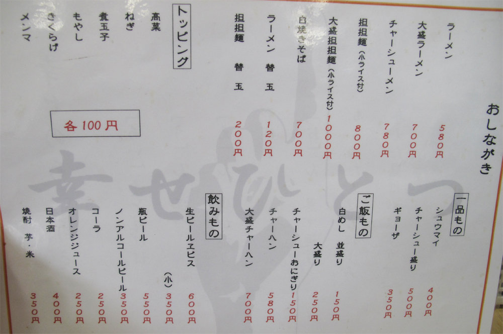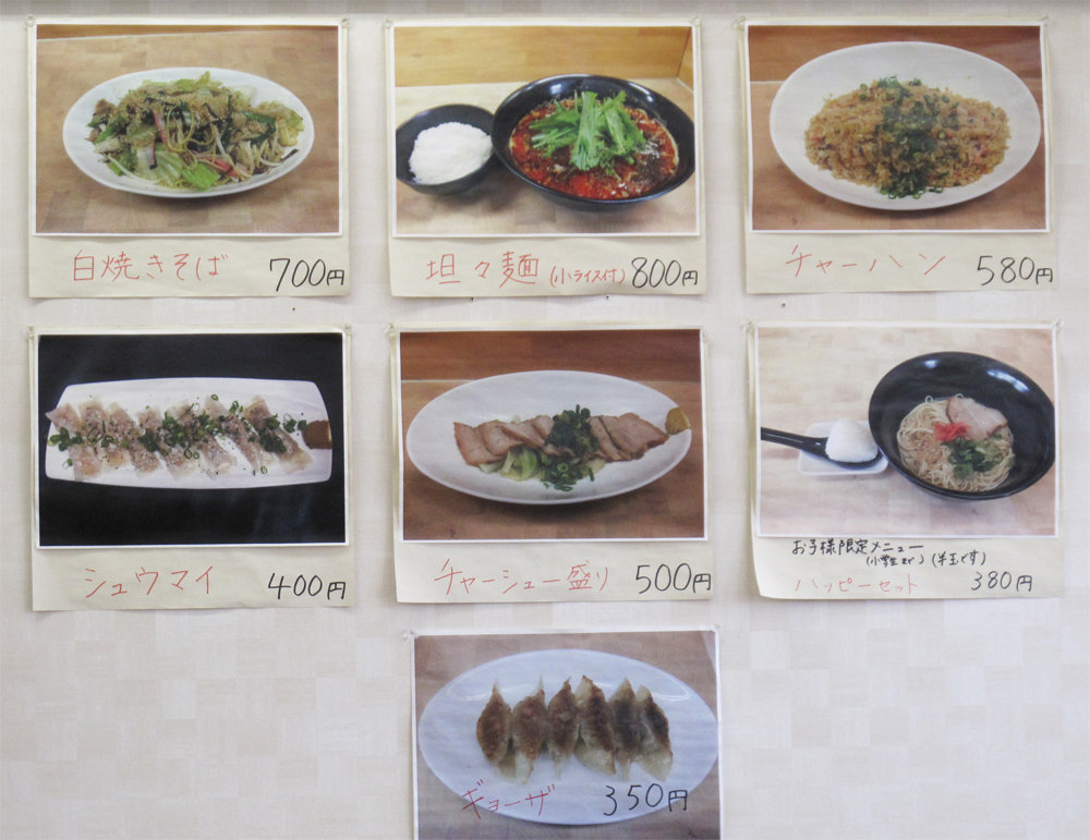 ラーメンの他には、担々麺や白焼きそばがあります。