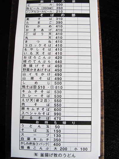 うどんメニューの他に同じトッピングでそばメニューもあります。