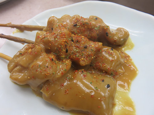 柔らかい弾力のアキレスと甘い白味噌ダレ、ピリッと辛い七味のコラボはたまりません。