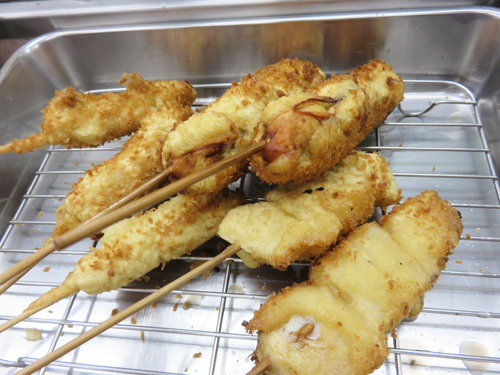 デフォルトの串かつ(牛肉)・イカ・タコ・カキ。
