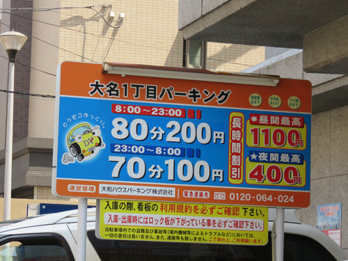 今回利用した近隣のコインパーキングは60分200円でございました。