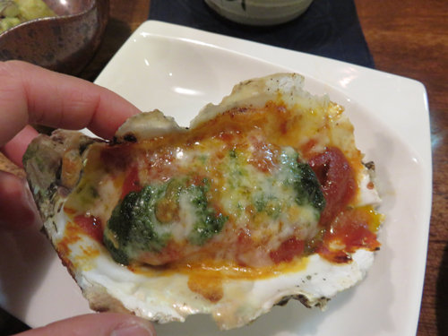 牡蠣のバジルトマトソース焼きです。