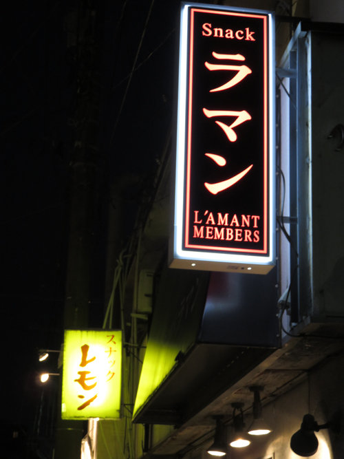 お店の並びにあるスナックのラマンとレモン。