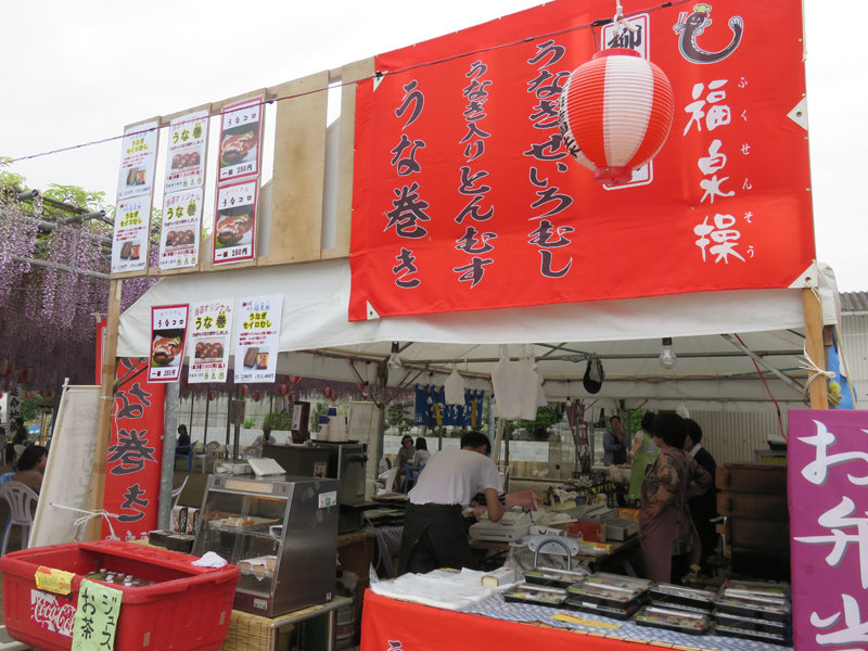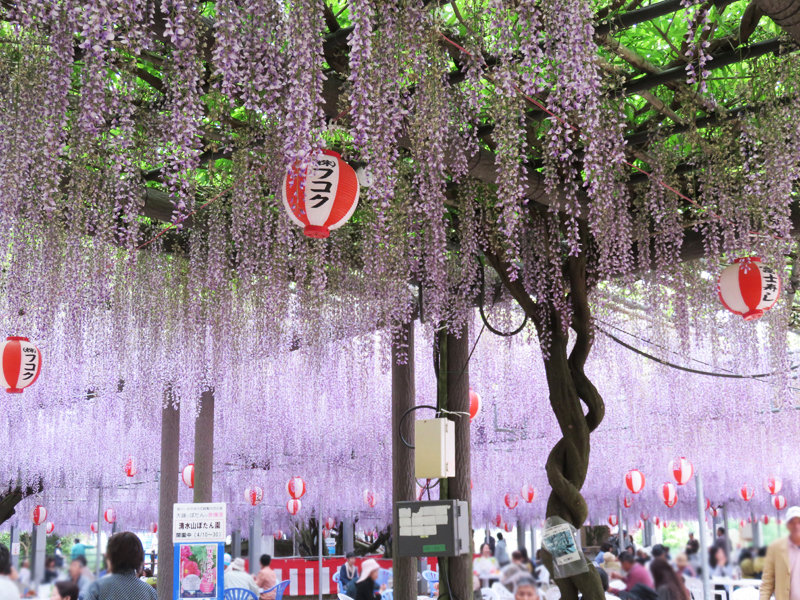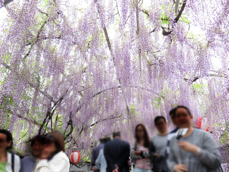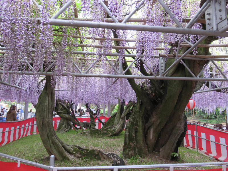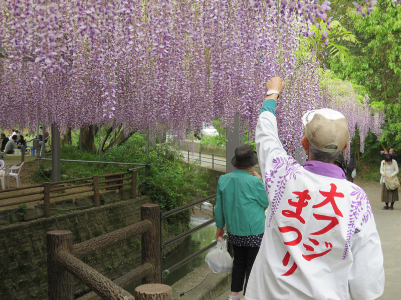 広い藤棚の下で、桜の花見のように飲み食いする見物客でわっしゃわっしゃしております。