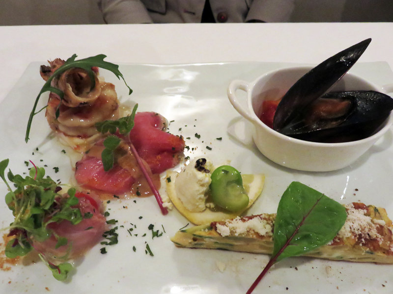 今回は、女性のお客様がいらしたので、女性が喜ぶキレイな盛り付けの前菜の盛り合わせを注文しました。