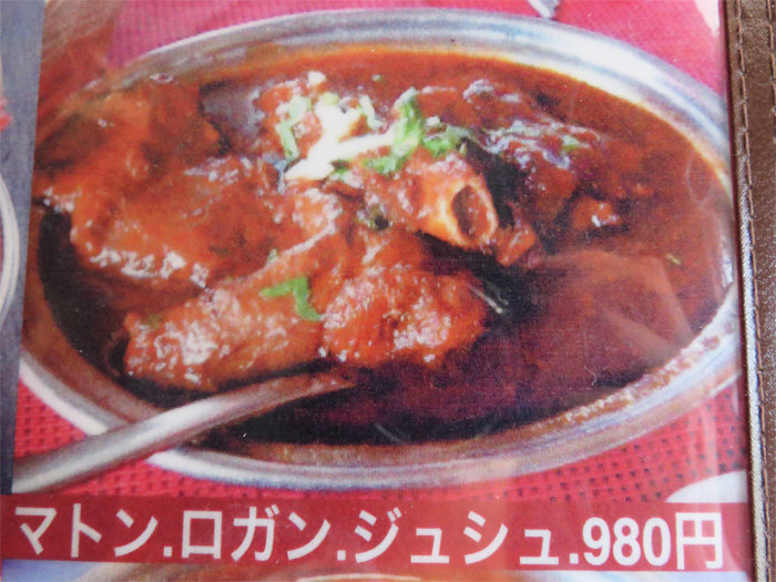 この店で一番高いカレー・骨付きヤギ肉カレー単品980円。