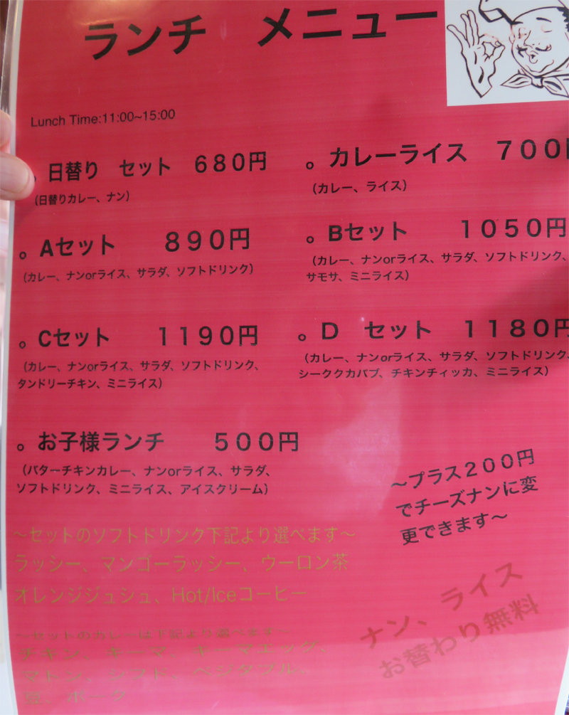印刷が見えにくいですが、日替わりセット以外のカレーとドリンクは選べます。
