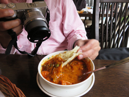 勇気を出して訊ねると、オーダーが伝わってなくて、普通のマトンカレー(この店で言うヤギ肉カレー)になってました。