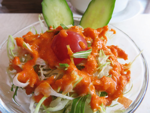 インド料理屋でお馴染みのオレンジドレッシングのサラダ。