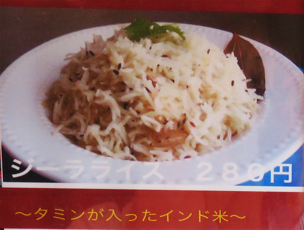 『ジーラライス』というクミン入りのインディカ米のライスです。