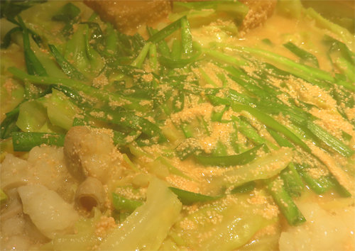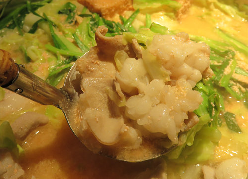 博多もつ鍋のシメの定番はチャンポン麺ですが、明太子もつ鍋の場合はチーズリゾットになります。