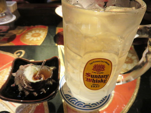 お通しは、サザエの醤油煮。