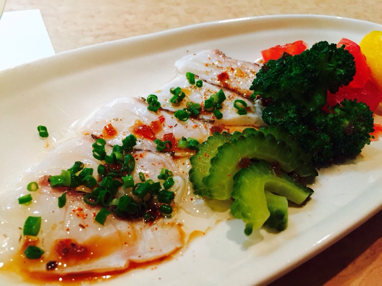 鯛の炙り!少しのオリーブオイルとゴーヤー、ブロッコリー、トマトで醤油ベース!