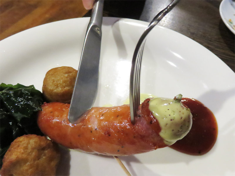 ソーセージのつけ根には、肉団子2つとワカメが付いてました。