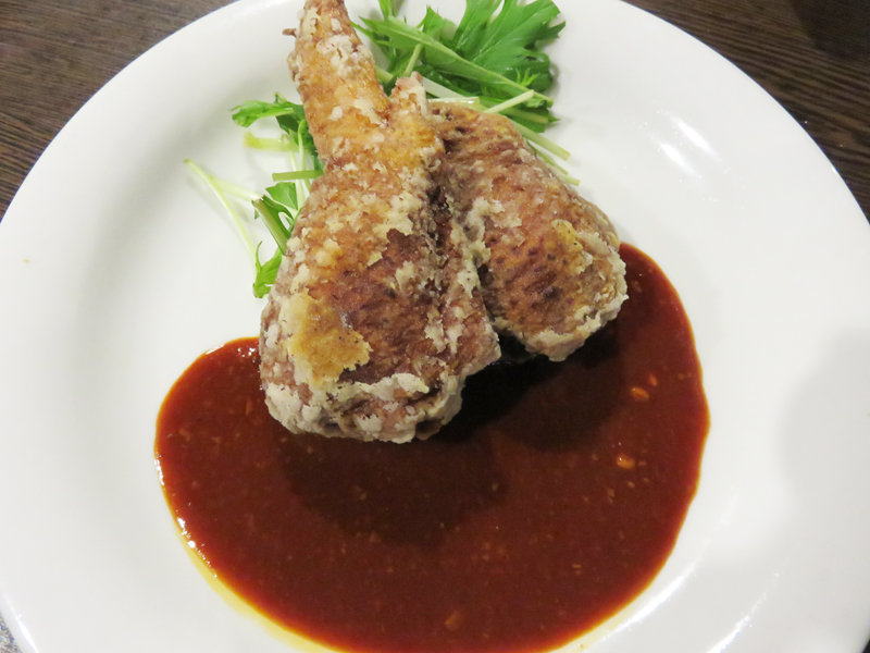 チリソースではなく、甘めの黒ゴマソースで頂きます。