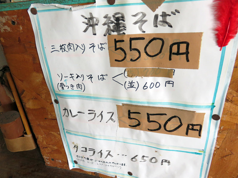 沖縄そば(三枚肉orソーキ)・タコライス・カレーライスのみ。
