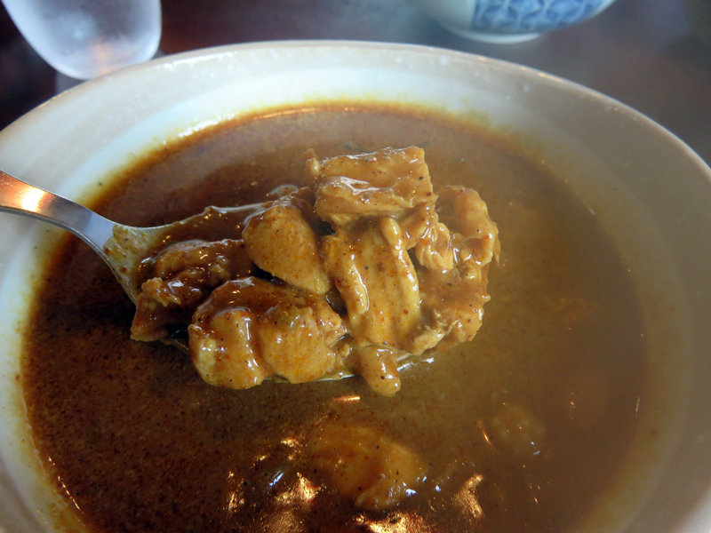 食感が硬い寒天のような感じで面白いですし、コクとスパイスの効いたカレーにとてもよく合います。