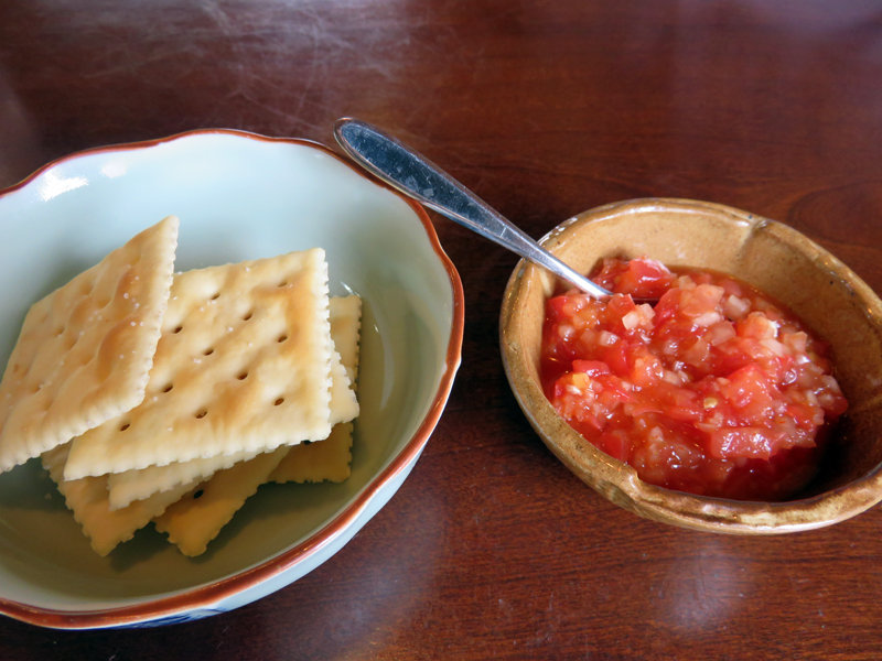 前菜代わりに出して下さったクラッカーとサルサソース。
