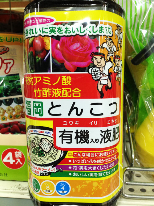 福岡県内のラーメン店から排出される豚骨ガラと伐採竹をリサイクルしてつくられた福岡オリジナルの有機入り液肥だそうです。