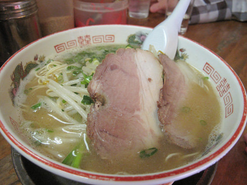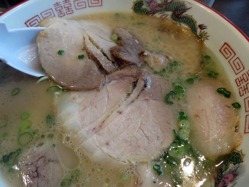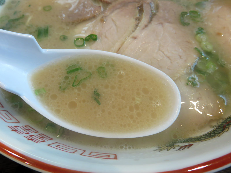 冨ちゃんラーメンのウリは、塩分やや強めで、コクがあるのにキレがある豚骨スープ。
