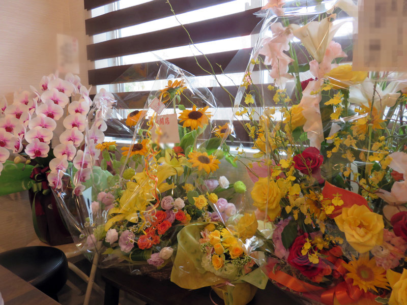 オープンして間もないので、まだまだ初々しい状態のお祝いのお花が沢山置いてありました。