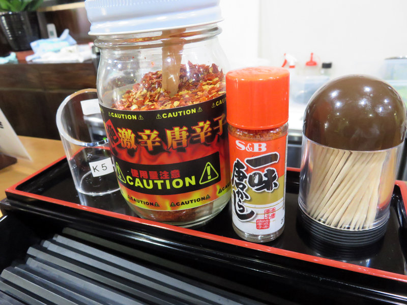 おろし生姜は最初から入っていますが、卓上の唐辛子をかけると