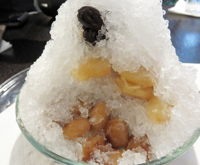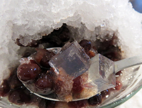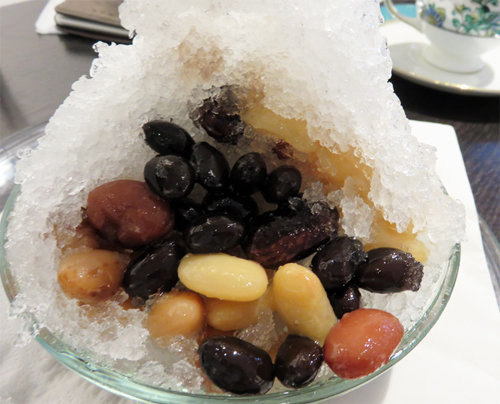 こちらは、『長春』というかき氷で、お豆5種・寒天入りで750円。