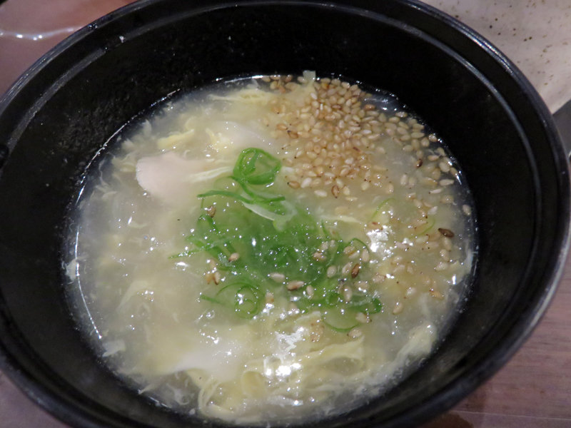 「本日は忙しくてサービスが遅れて申し訳ありません。」とサービスで頂いた鶏スープです。