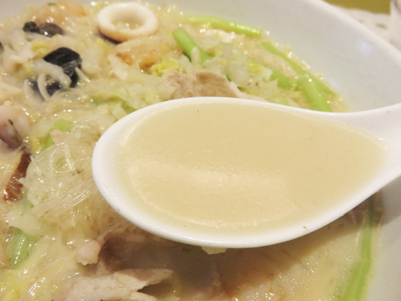 チャンポンのスープは、澄まし系・白濁系・豚骨系・鶏ガラ中華系と色々ありますが、