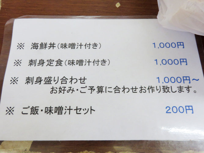 鈴木鮮魚店で購入したものや、同店で調理した海鮮丼・刺身などを頂くことが出来ます。
