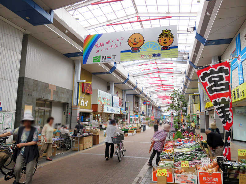 新潟市にも本町市場(ほんちょういちば)という全長150mほどの露店を含む商店街があります。