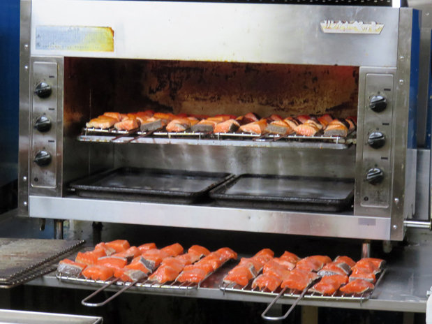 鮭の焼き漬け用の鮭は、お店の奥のオーブンで焼いていました。