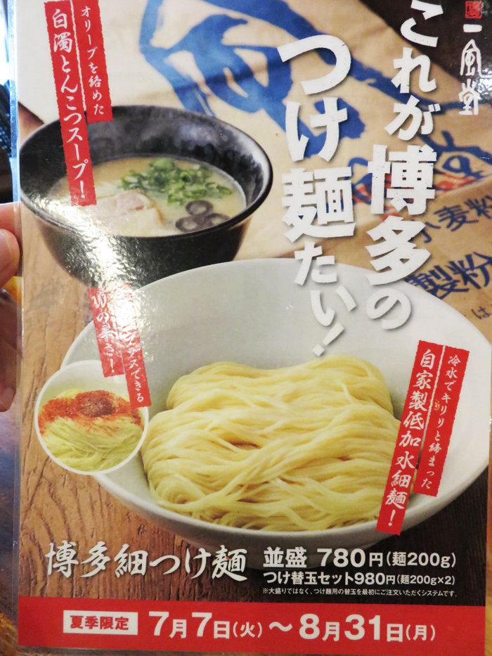 【福岡】夏季限定!博多細つけ麺&白丸スペシャル♪@博多一風堂 山王店