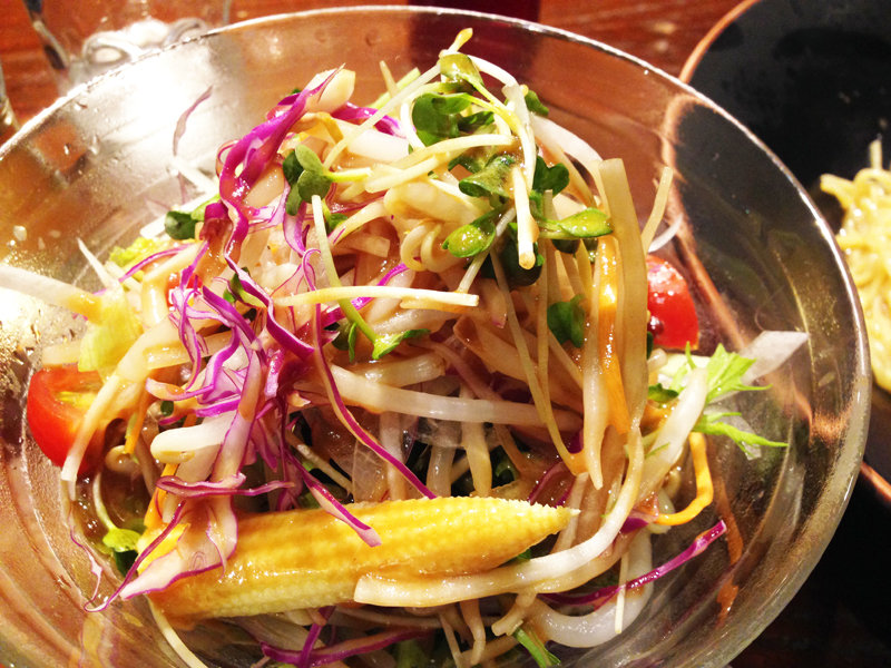 サラダは柔らかい葉野菜がメインなので、消化も良く、麺とも馴染みやすいです。