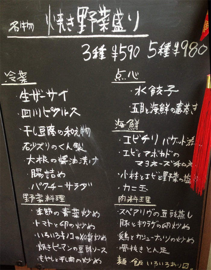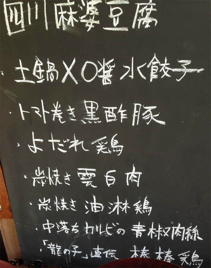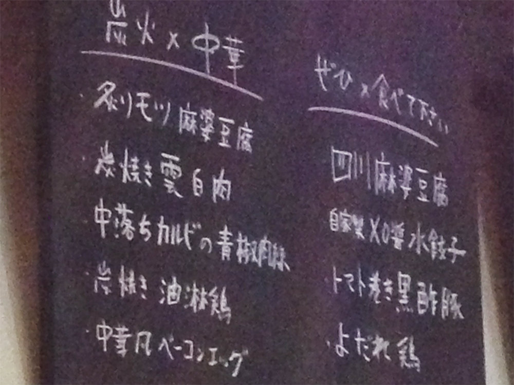 ブツが来るまで、店内の黒板メニュー(夜用)を眺めます。