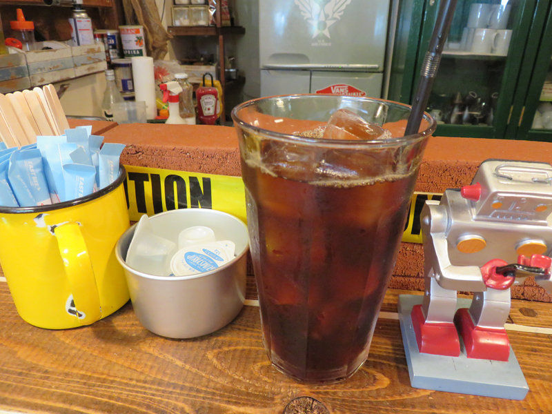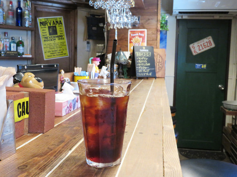 時間がゆっくりと流れる中、前菜的にアイスコーヒーを頂きながら、昼間のカフェ店主さんとお話します。