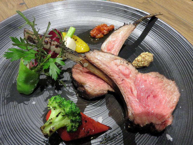 ラムラック(仔羊のロースのあばら骨の付いたもの)です。