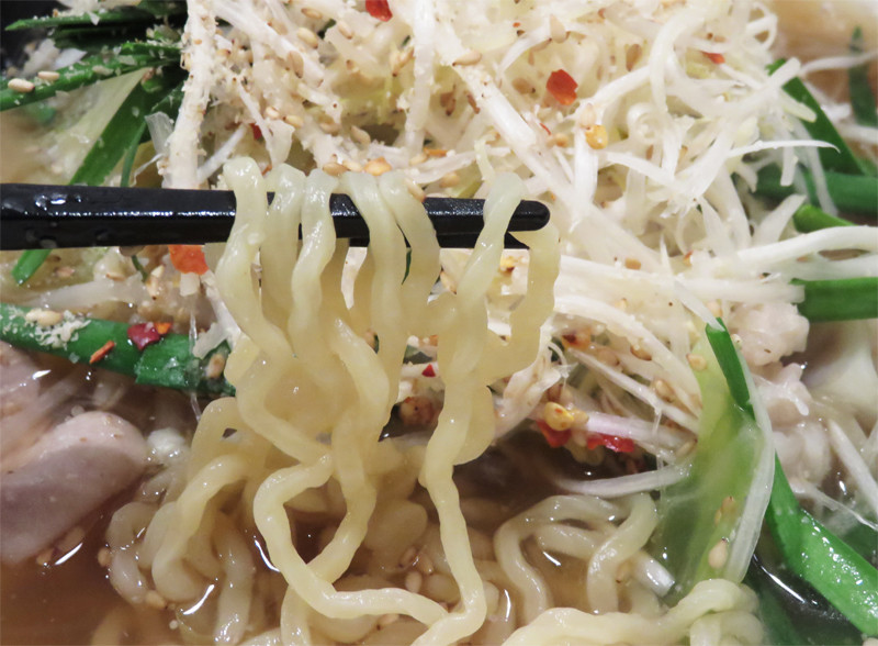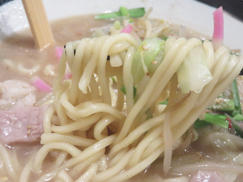 スープがあっさり醤油味なので、麺はこれ位のボリューミーな食感があったほうが盛り下がりません。
