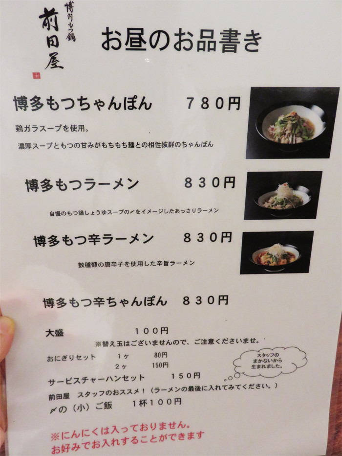 もつラーメンともつちゃんぽんはランチ限定メニューだそうです。